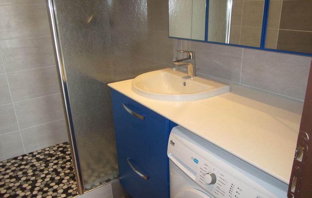 Renovated bathroom with shower, electric towel rail and washing machine. Separate WC.