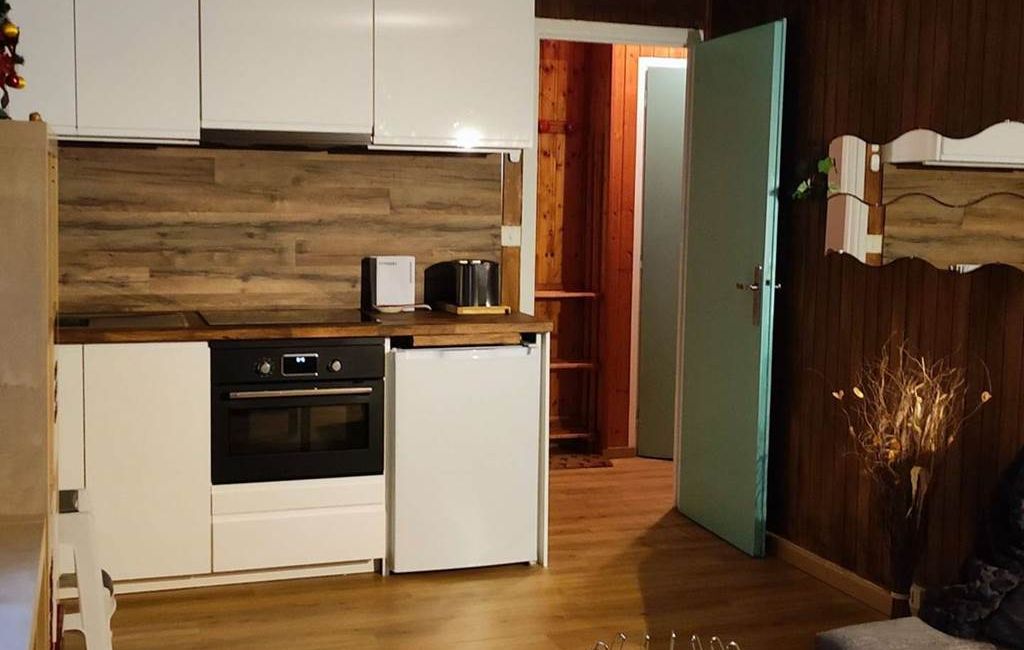 Kitchen area equipped with fridge, 4 hotplates, microwave, mini electric oven, filter coffee maker, fondue set.