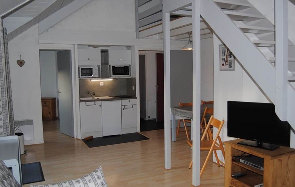 Right in the heart of the village, in the tree-lined and secure "Les Chalets du Village" residence, we offer you a beautiful 2-room flat with a cabin measuring around 58m² and equipped for 6 people.
