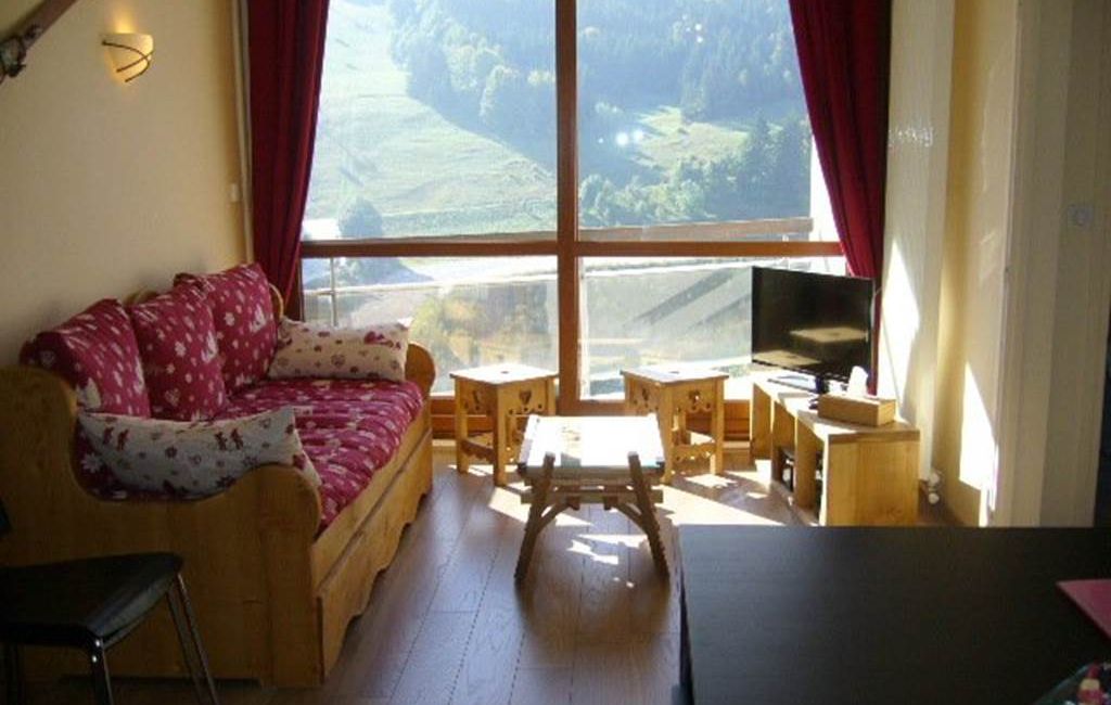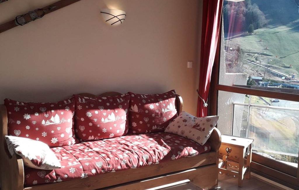 Living room: TV, south-facing balcony with views of the slopes. Sofa bed (2X80cm), convertible into a 160cm bed.