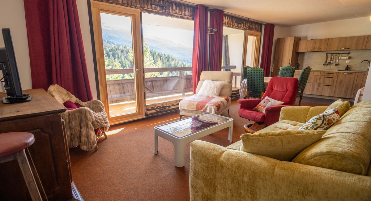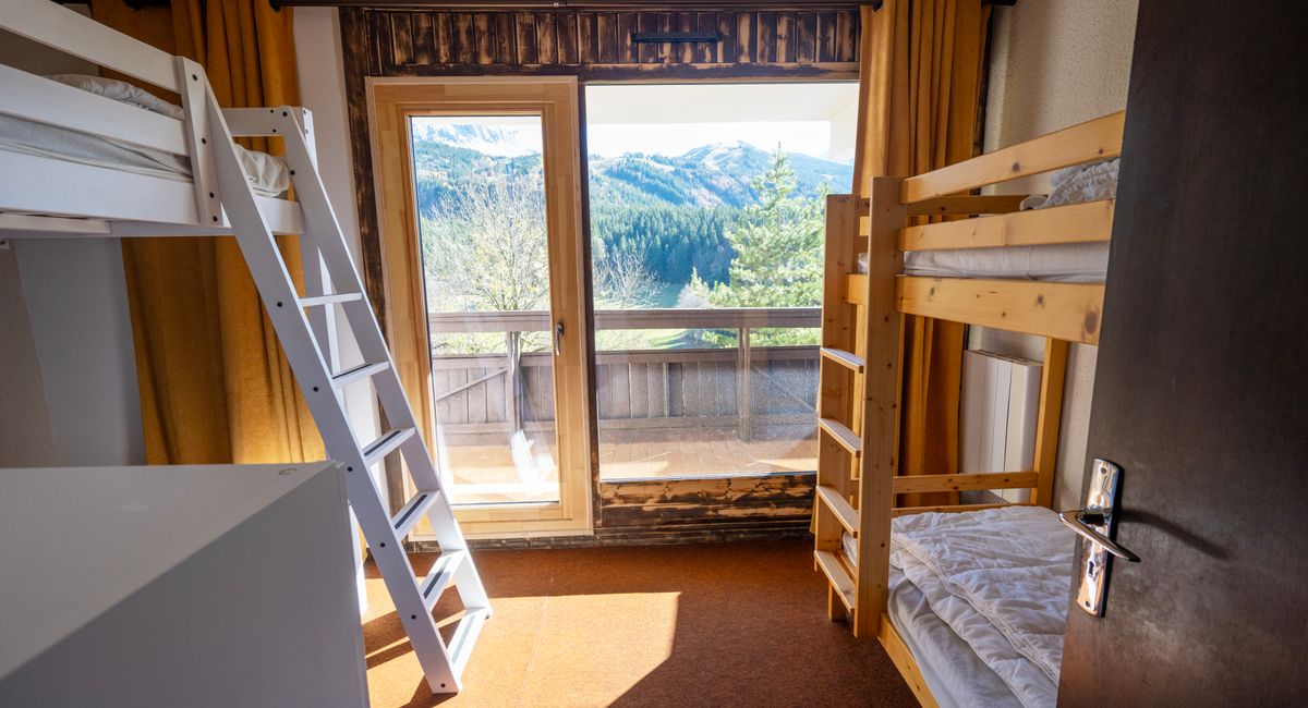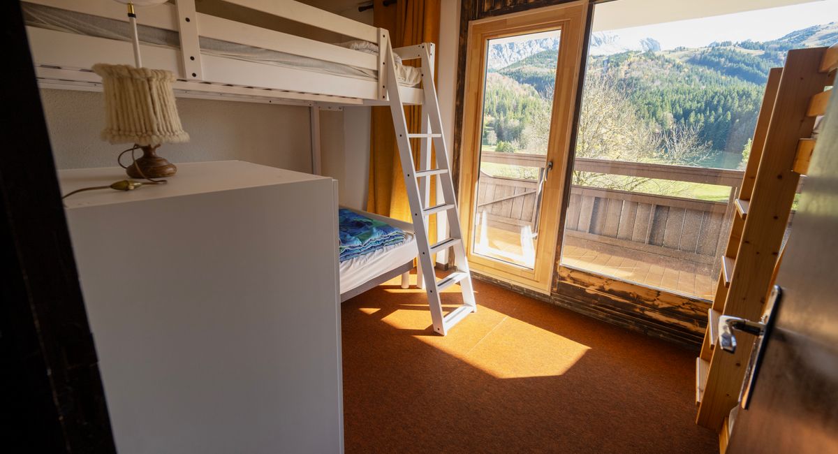 Large 75 m2 duplex flat, on 2 levels, with panoramic views of the Vercors mountain range. This south-facing flat sleeps 6 and is located at the foot of the ski slopes at "les Glovettes".