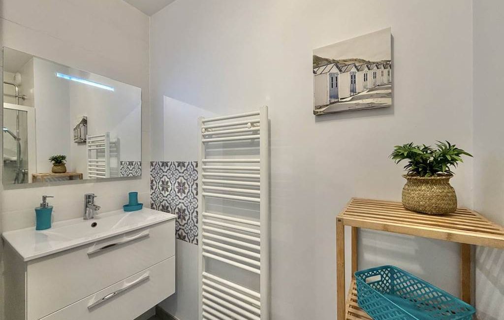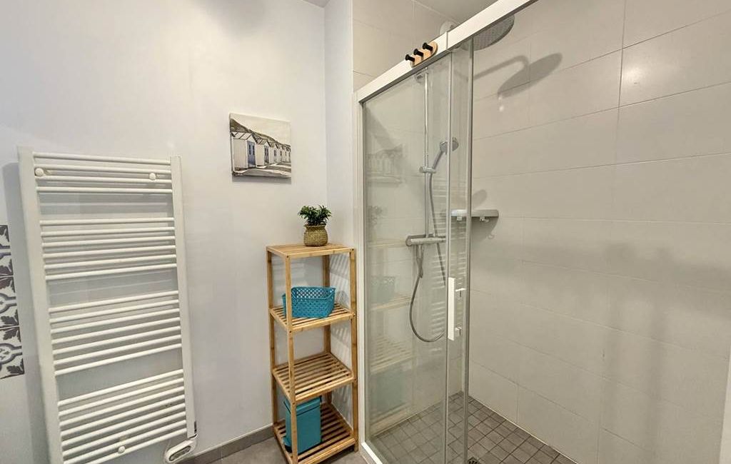 The bathroom has a large shower, washbasin, washing machine and hairdryer. There is a separate toilet. Underfloor heating ensures optimum comfort.