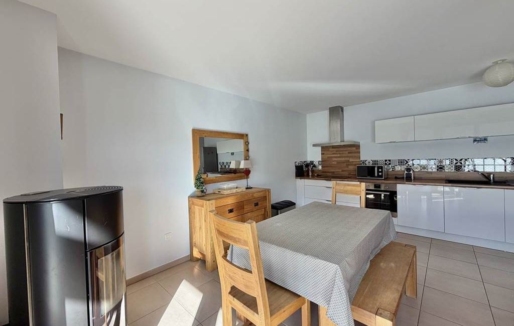 The open-plan kitchen is fully equipped with dishwasher, fridge/freezer, conventional oven, microwave, filter and Nespresso coffee maker, kettle, toaster and raclette machine.