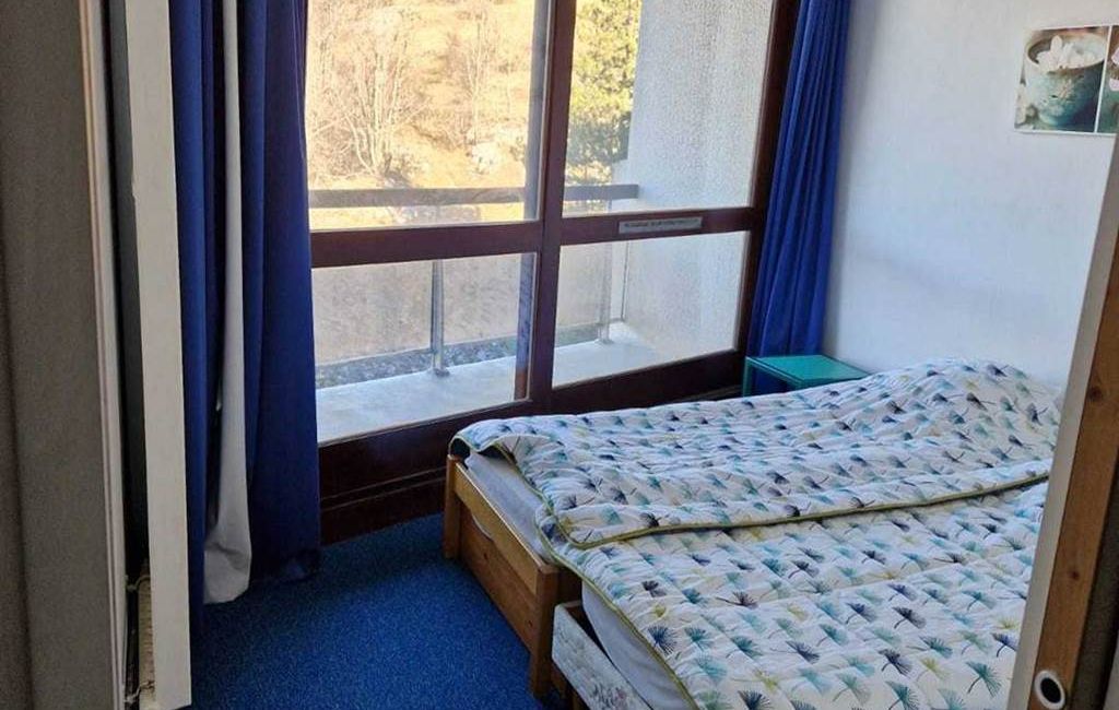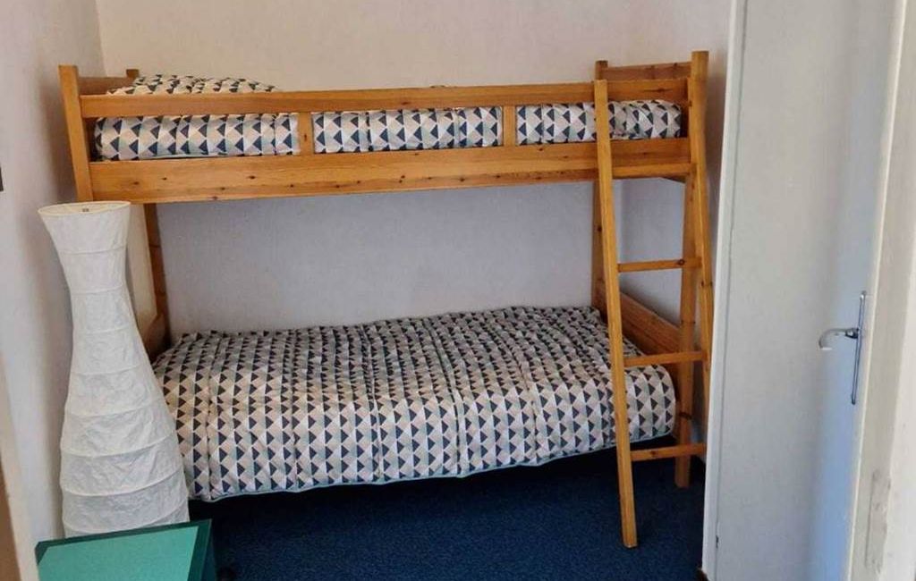 One bedroom with a double bed (140cm), the other with 2 single beds (90cm) + an enclosed mountain area with 2 bunk beds.