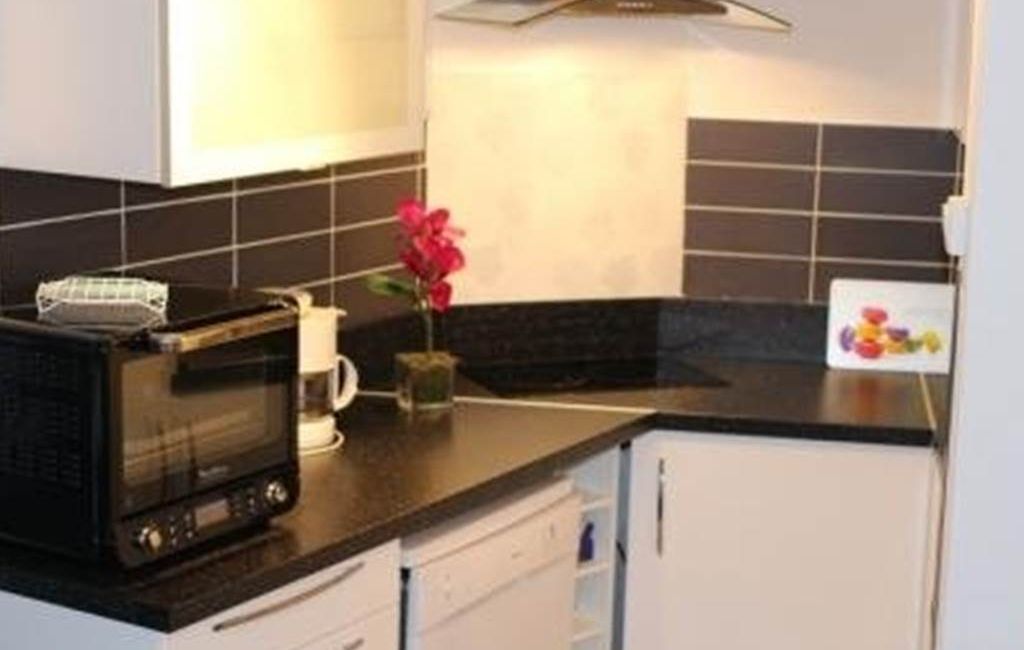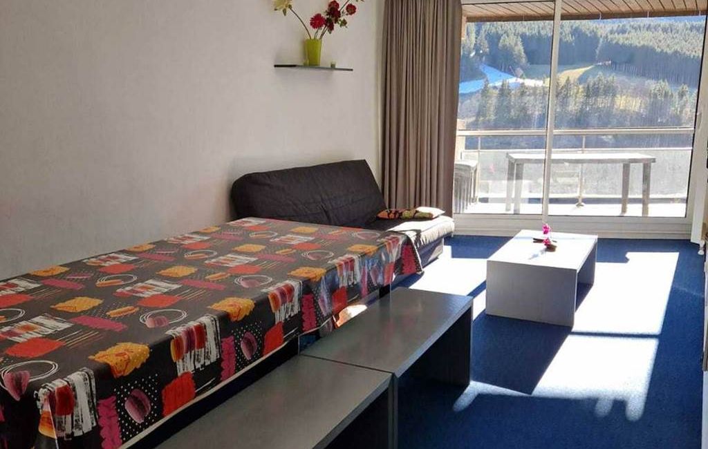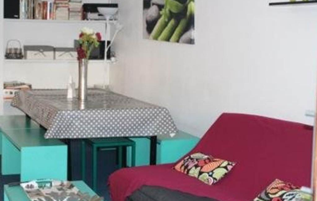 Comprising a living room opening onto a south-facing balcony with TV and sofa bed (140 cm).