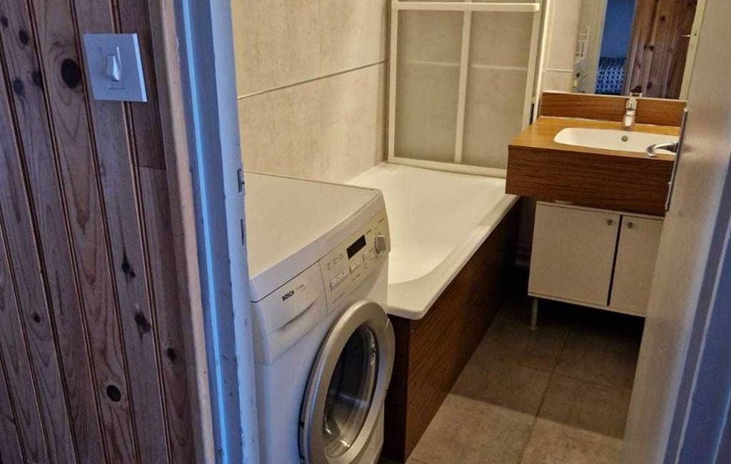 Two bathrooms, one with bath and washing machine, the other with shower. Separate WC.