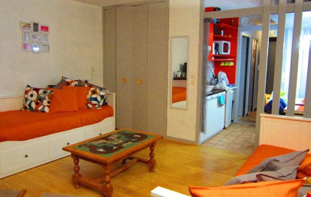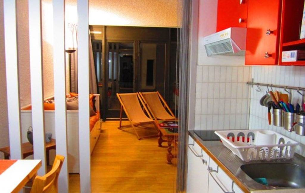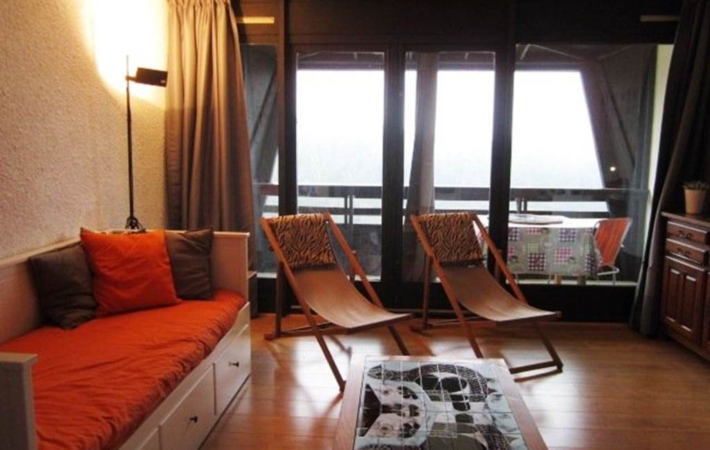 Living room with TV opening onto a large south-facing balcony. Two sofas, 1 of which converts to a 160cm bed (2 80X200cm mattresses).