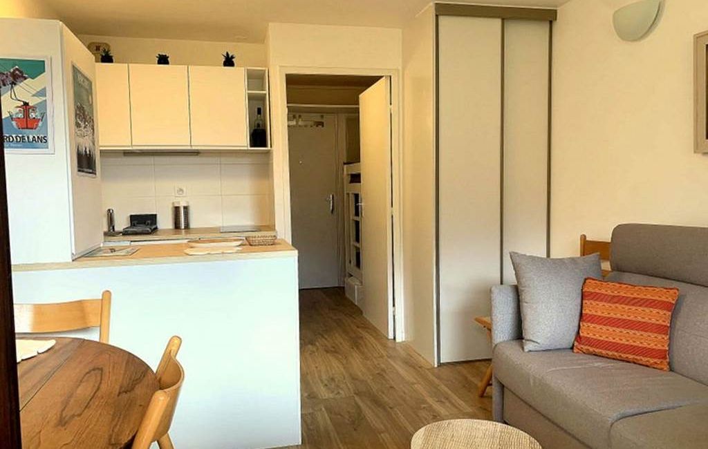 In the heart of the village of Villard De Lans, in the residence "Les chalets du village", quiet, studio cabin on the 1st floor in excellent condition, renovated.