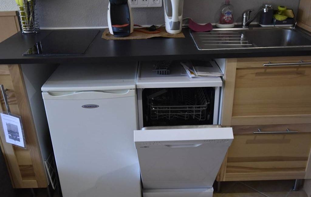 Refurbished kitchen area with dishwasher, multifunction microwave/grill, Dolce Gusto coffee machine, kettle, raclette/pierrade machine, electric barbecue.
