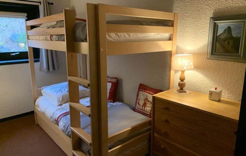 At the foot of the slopes in Villard de Lans, in the Les Glovettes development, 1st floor (5th level) 3-room flat.