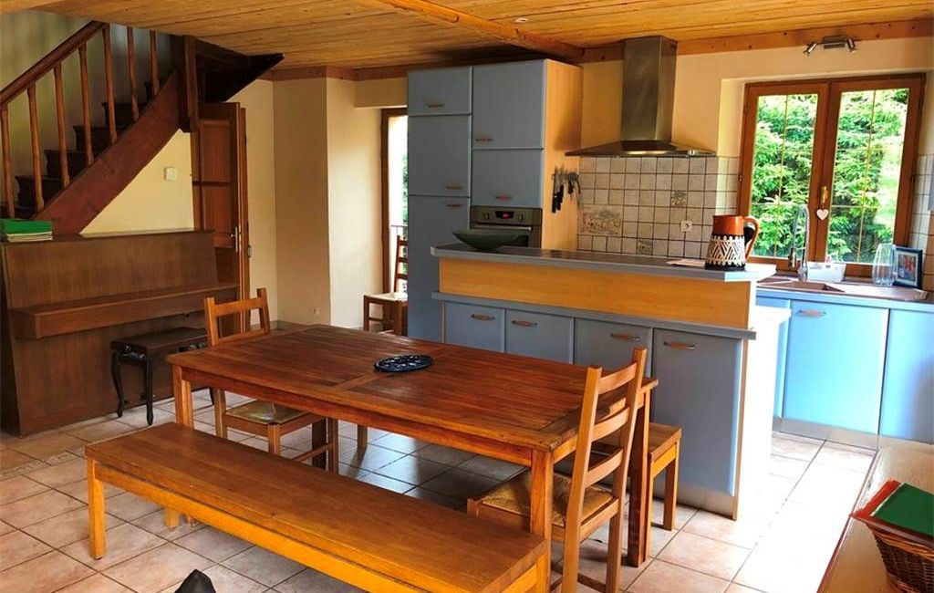 dining room, sitting room with fireplace, open-plan kitchen, bathroom (shower and bath), separate WC ;
