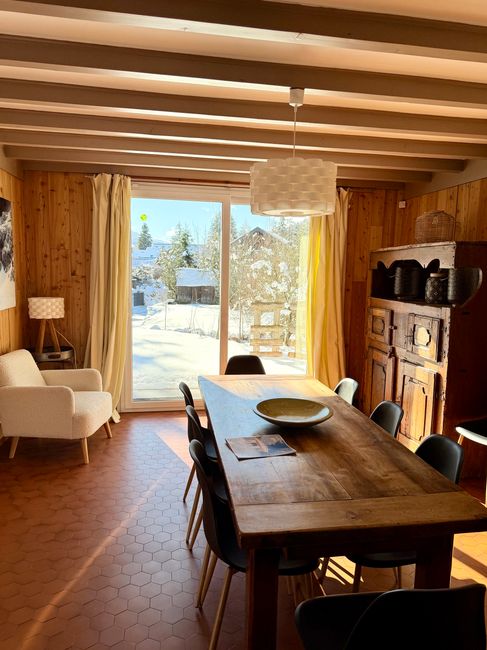 This 135 m² house is located in the center of the village, facing south. Just steps from shops and the bus station, this welcoming family home welcomes you into a peaceful setting with a garden, parking, and a secure garage.