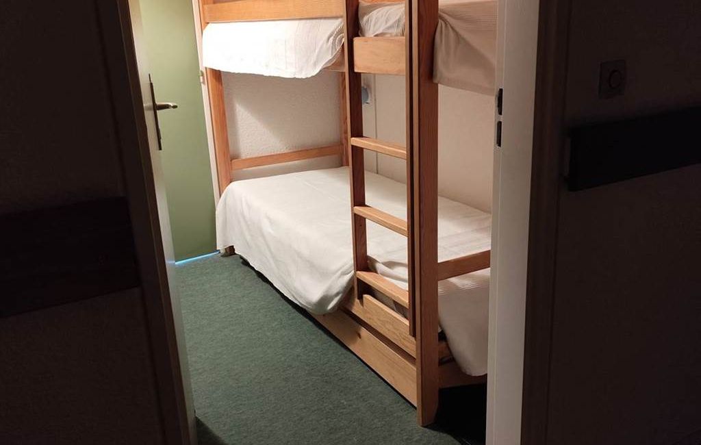 a closed cabin with 2 bunk beds, a shower room with WC, a living room with sofa bed (140 x 190 cm) with access to a south-facing balcony.