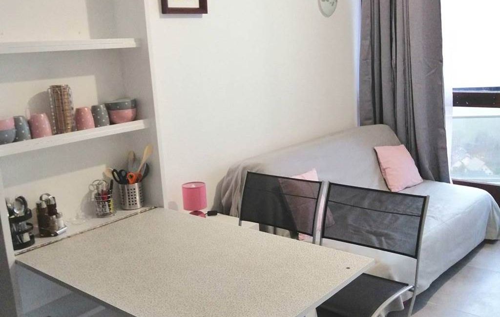 Classified 2** - Coquettish renovated studio cabin with a cabin area of 18m² and equipped for 4 people. Located on the 10th floor with lift. West-facing balcony with lovely views over the Corrençon en Vercors valley.