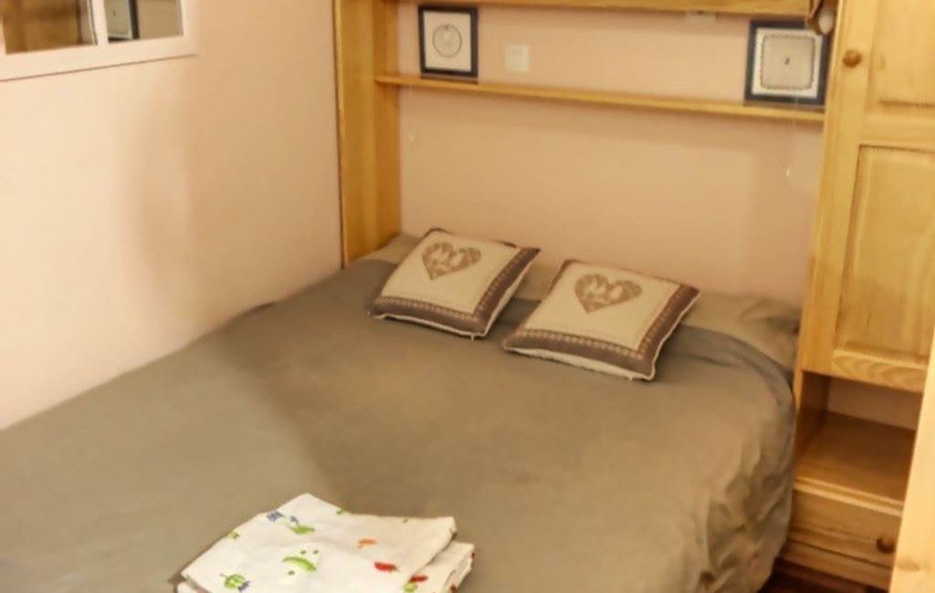 entrance hall, sleeping area with 1 double bed (140cm), foldaway bunk beds in the hallway, living room with sofa bed, open-plan fitted kitchen, shower room and separate WC, south-east-facing terrace.