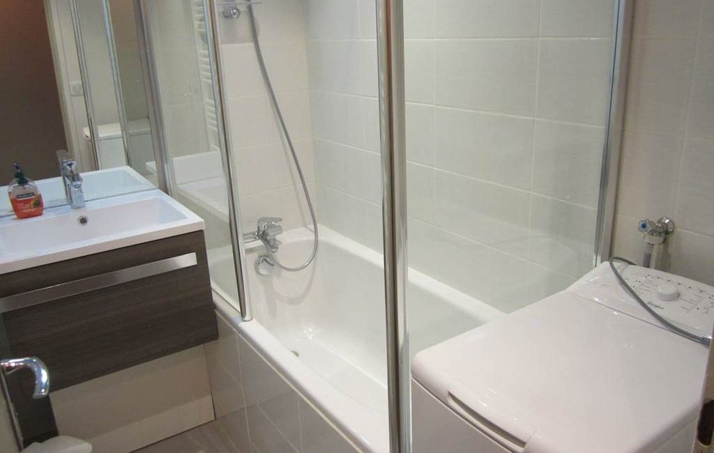 Fully renovated bathroom with bath, hairdryer and washing machine. Separate WC.