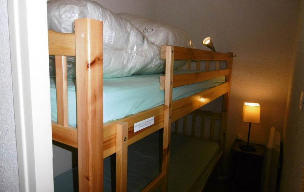 Entrance hall with enclosed sleeping area equipped with 2 bunk beds + a 3rd wall-mounted foldaway 90cm bed.
